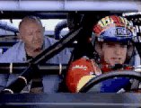 Jeff Gordon and his ride along friend tell stories.