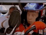Jeff Gordon tries to guess who his ride along friend is.